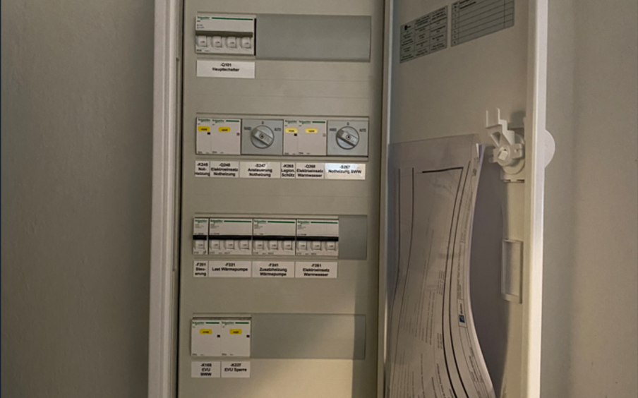 Ebenfalls waren wir verantwortlich für die Installation sämtlicher Temperaturfühler, Mischventile und Pumpen und erstellten den elektrischen Sicherheitsnachweis (SiNa) sowie das Mess- und Prüfprotokoll der installierten Anlage. Zusammen mit dem Servicetechniker der Herstellerfirma nahmen wir schliesslich die neue Wärmepumpe in Betrieb.
